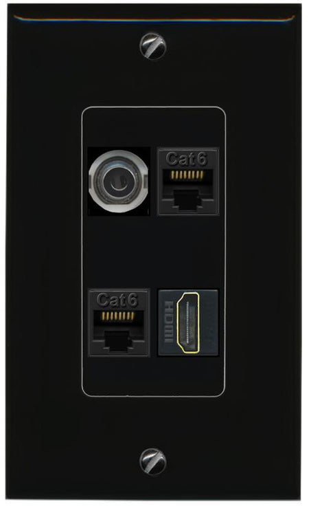 RiteAV 3.5mm 2 CAT6 HDMI Wall Plate Decorative [Black]