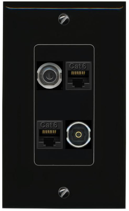 RiteAV 3.5mm 2 CAT6 TOSLINK Wall Plate Decorative [Black]