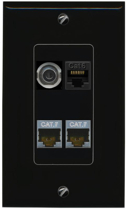RiteAV 3.5mm CAT6 2 CAT7 Wall Plate Decorative [Black]