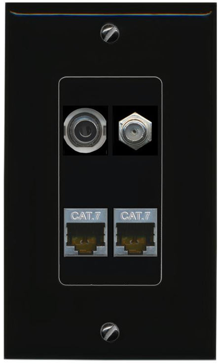 RiteAV 3.5mm 2 CAT7 COAX Wall Plate Decorative [Black]