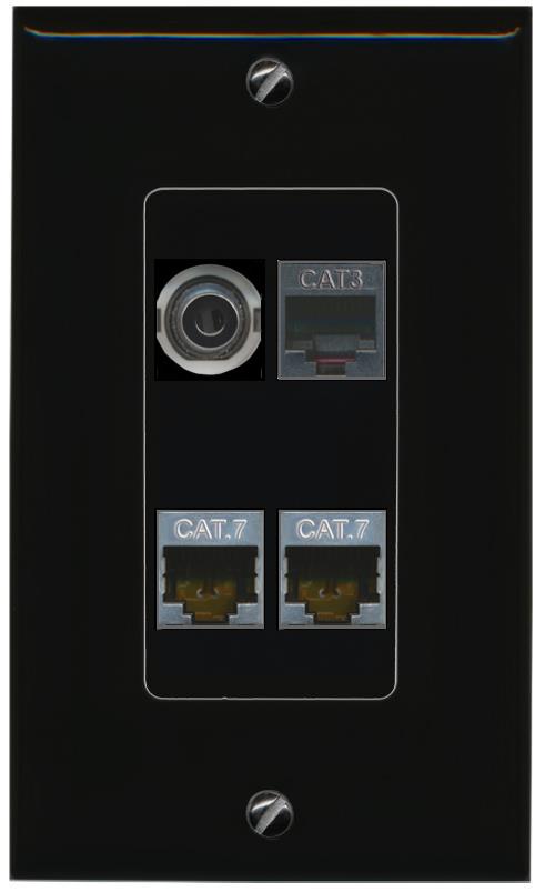 RiteAV 3.5mm 2 CAT7 PHONE Wall Plate Decorative [Black]