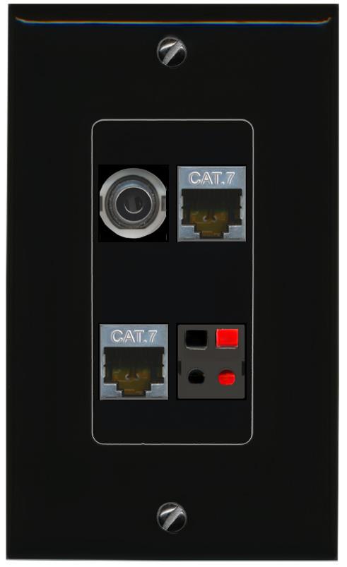 RiteAV 3.5mm 2 CAT7 SPEAKER Wall Plate Decorative [Black]