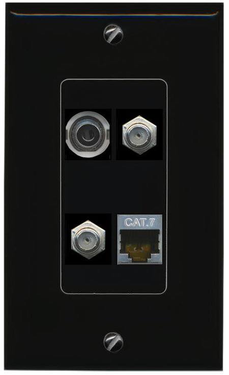 RiteAV 3.5mm CAT7 2 COAX Wall Plate Decorative [Black]