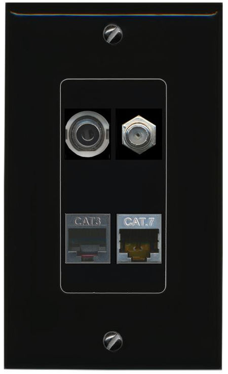 RiteAV 3.5mm CAT7 COAX PHONE Wall Plate Decorative [Black]