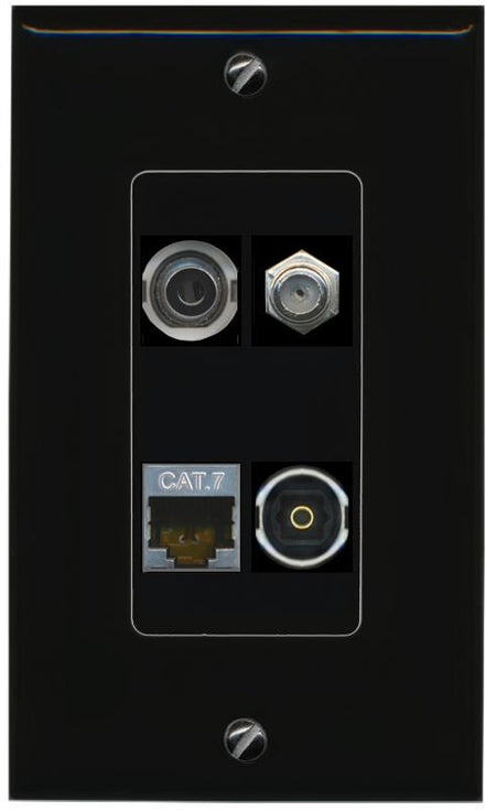 RiteAV 3.5mm CAT7 COAX TOSLINK Wall Plate Decorative [Black]