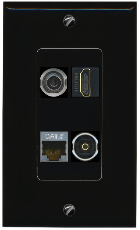 RiteAV 3.5mm CAT7 HDMI TOSLINK Wall Plate Decorative [Black]