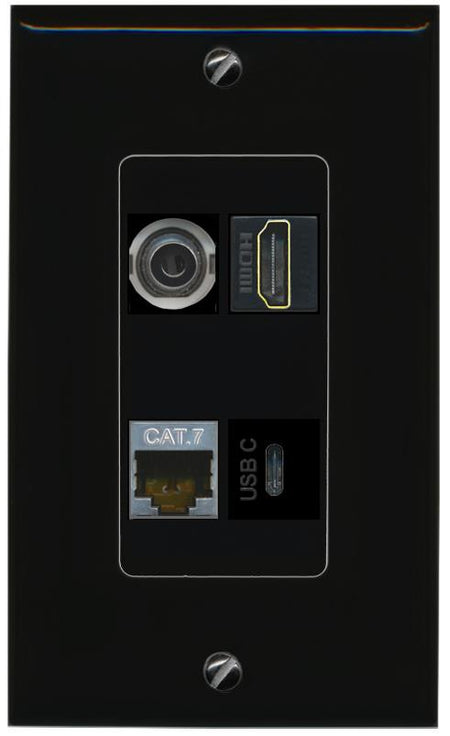 RiteAV 3.5mm CAT7 HDMI USBC Wall Plate Decorative [Black]