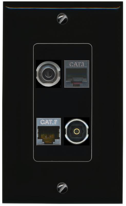 RiteAV 3.5mm CAT7 PHONE TOSLINK Wall Plate Decorative [Black]