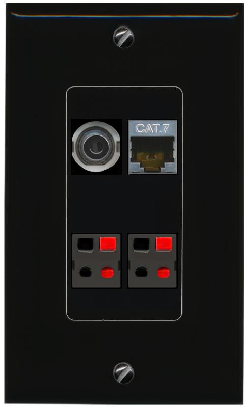 RiteAV 3.5mm CAT7 2 SPEAKER Wall Plate Decorative [Black]