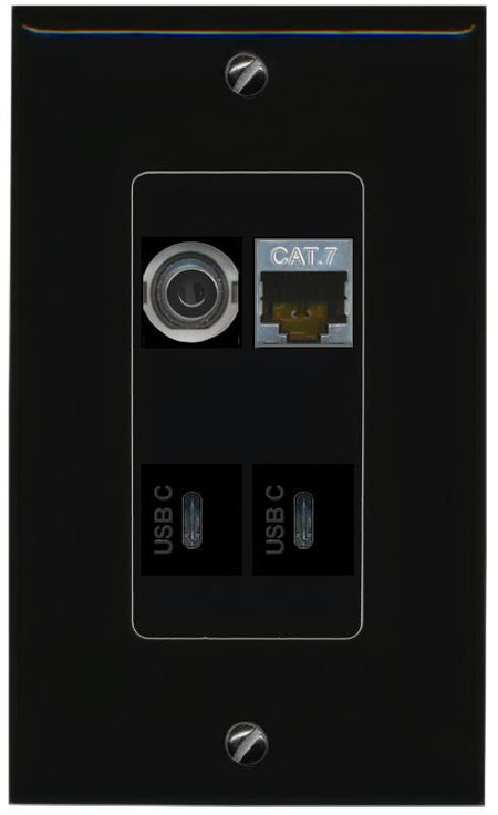 RiteAV 3.5mm CAT7 2 USBC Wall Plate Decorative [Black]