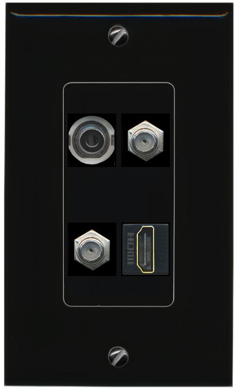 RiteAV 3.5mm 2 COAX HDMI Wall Plate Decorative [Black]