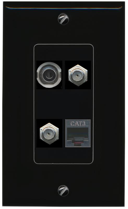 RiteAV 3.5mm 2 COAX PHONE Wall Plate Decorative [Black]