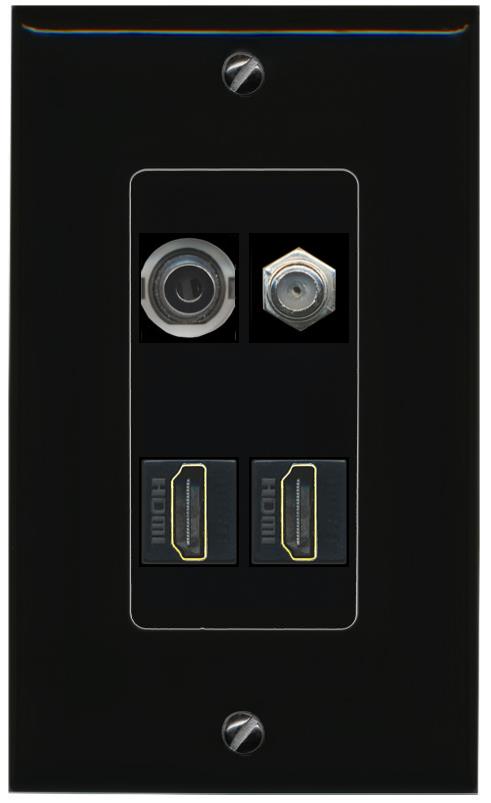 RiteAV 3.5mm COAX 2 HDMI Wall Plate Decorative [Black]