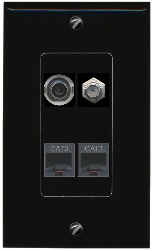 RiteAV 3.5mm COAX 2 PHONE Wall Plate Decorative [Black]