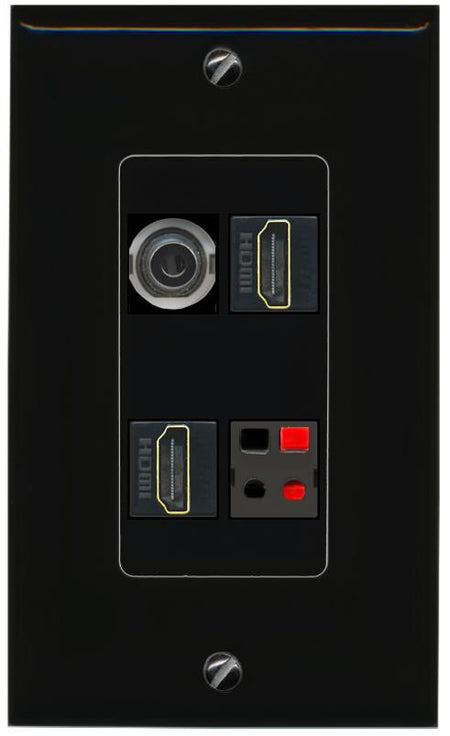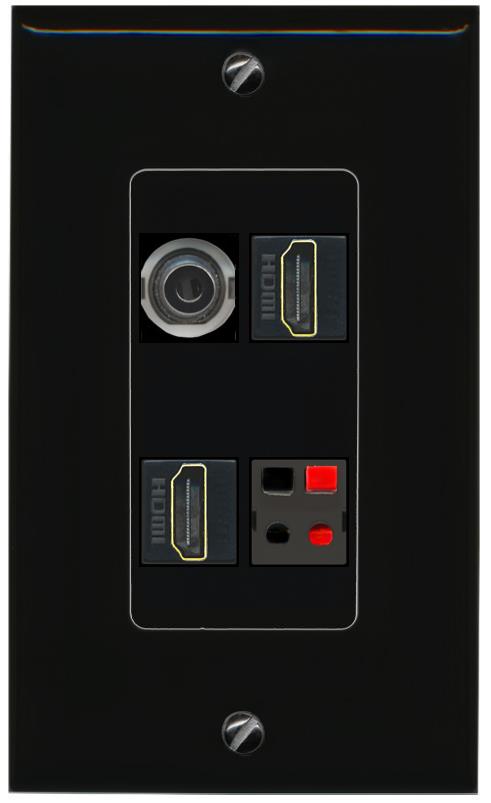 RiteAV 3.5mm 2 HDMI SPEAKER Wall Plate Decorative [Black]