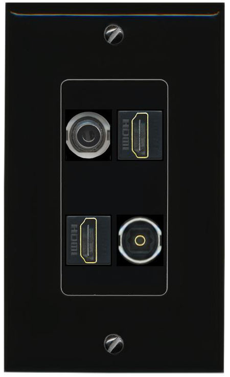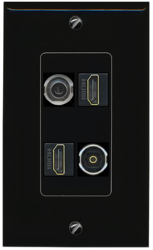 RiteAV 3.5mm 2 HDMI TOSLINK Wall Plate Decorative [Black]