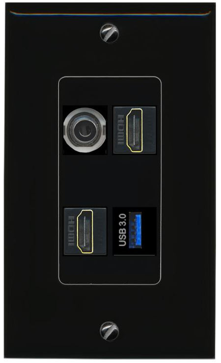 RiteAV 3.5mm 2 HDMI USB-3 Wall Plate Decorative [Black]
