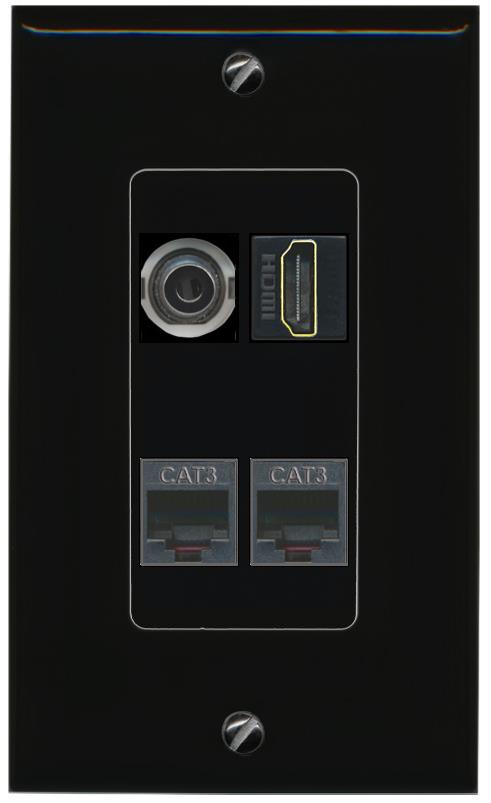 RiteAV 3.5mm HDMI 2 PHONE Wall Plate Decorative [Black]