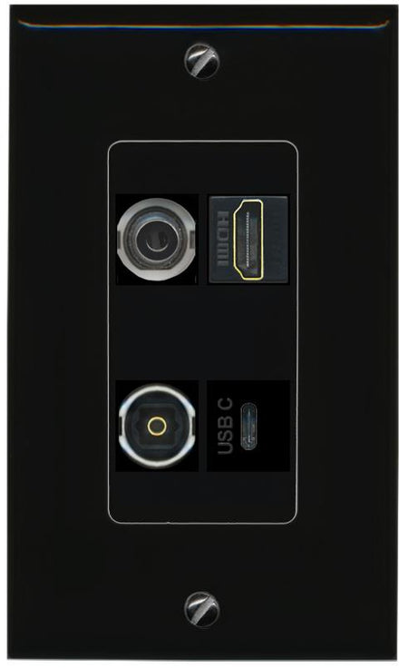 RiteAV 3.5mm HDMI TOSLINK USBC Wall Plate Decorative [Black]
