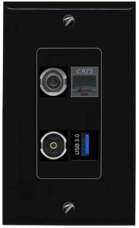 RiteAV 3.5mm PHONE TOSLINK USB-3 Wall Plate Decorative [Black]