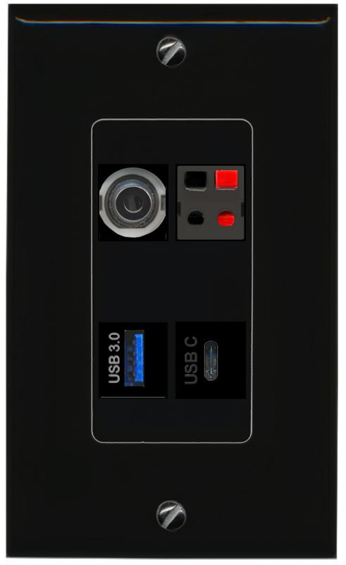 RiteAV 3.5mm SPEAKER USB-3 USBC Wall Plate Decorative [Black]