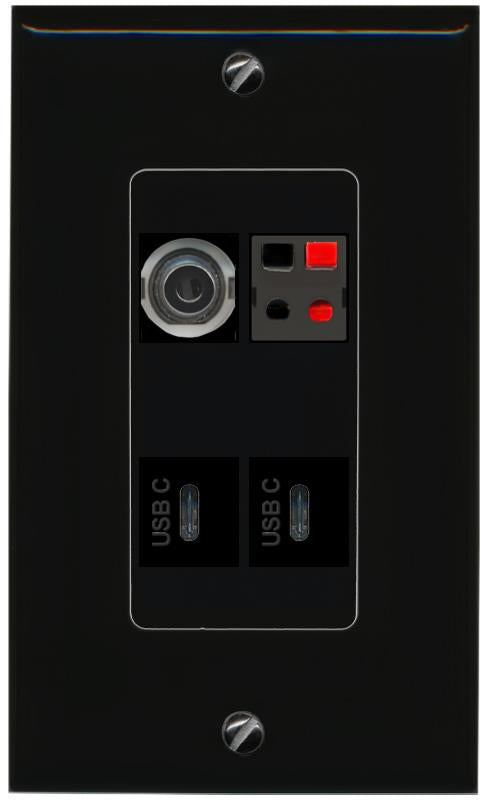 RiteAV 3.5mm SPEAKER 2 USBC Wall Plate Decorative [Black]