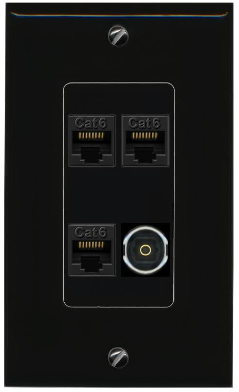 RiteAV 3 CAT6 TOSLINK Wall Plate Decorative [Black]