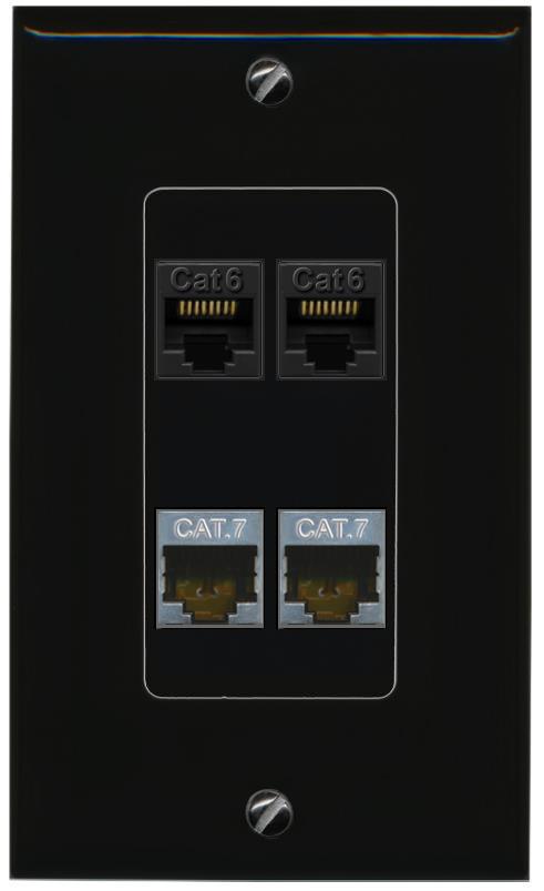 RiteAV 2 CAT6 2 CAT7 Wall Plate Decorative [Black]