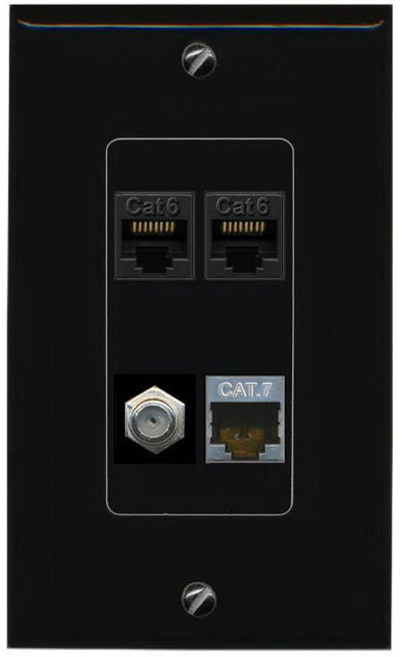 RiteAV 2 CAT6 CAT7 COAX Wall Plate Decorative [Black]