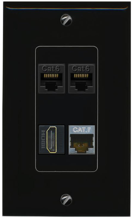 RiteAV 2 CAT6 CAT7 HDMI Wall Plate Decorative [Black]