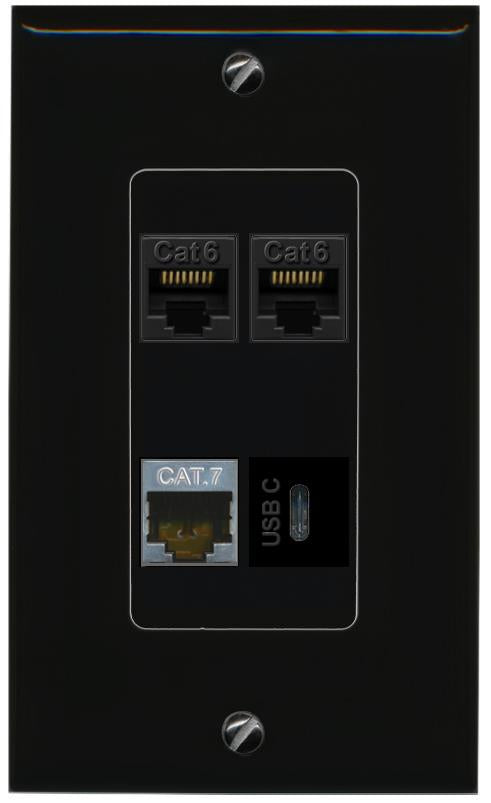 RiteAV 2 CAT6 CAT7 USBC Wall Plate Decorative [Black]