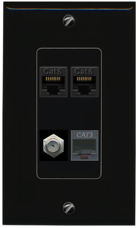 RiteAV 2 CAT6 COAX PHONE Wall Plate Decorative [Black]
