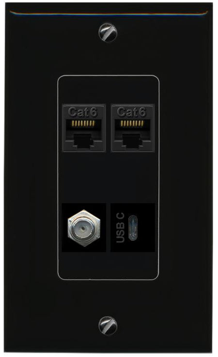 RiteAV 2 CAT6 COAX USBC Wall Plate Decorative [Black]