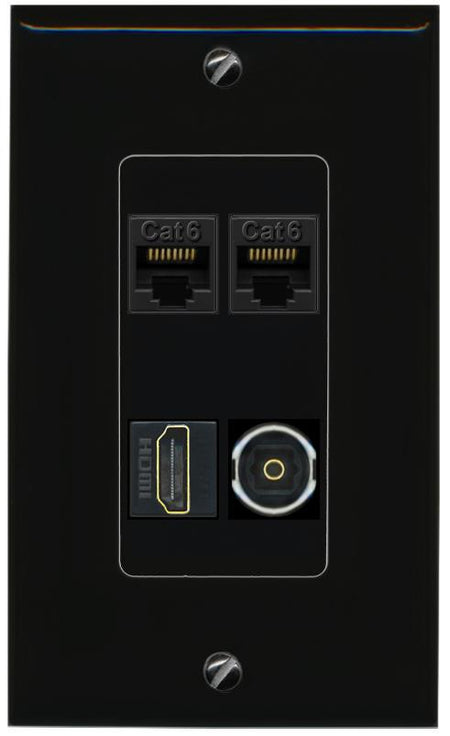 RiteAV 2 CAT6 HDMI TOSLINK Wall Plate Decorative [Black]
