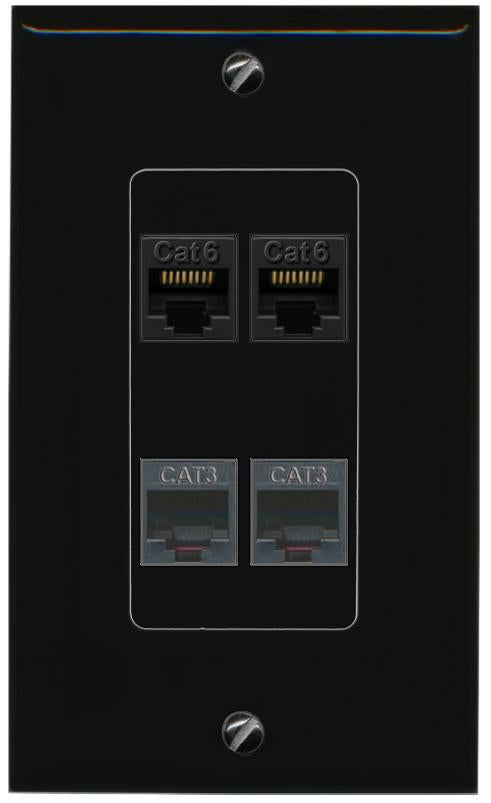 RiteAV 2 CAT6 2 PHONE Wall Plate Decorative [Black]