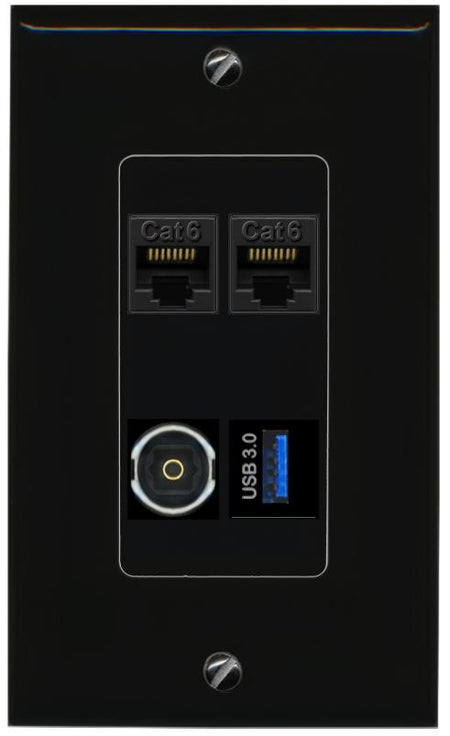RiteAV 2 CAT6 TOSLINK USB-3 Wall Plate Decorative [Black]
