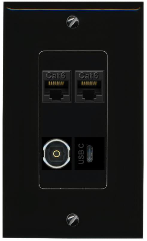 RiteAV 2 CAT6 TOSLINK USBC Wall Plate Decorative [Black]