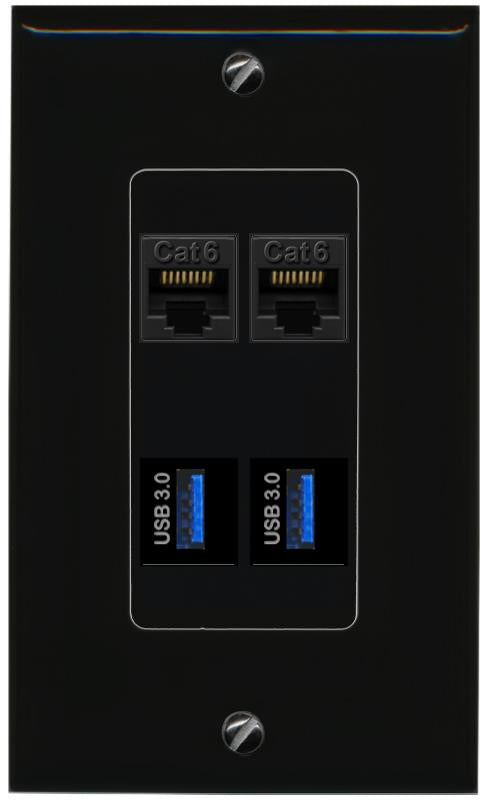 RiteAV 2 CAT6 2 USB-3 Wall Plate Decorative [Black]