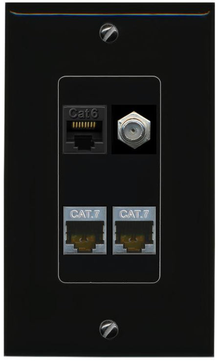 RiteAV CAT6 2 CAT7 COAX Wall Plate Decorative [Black]