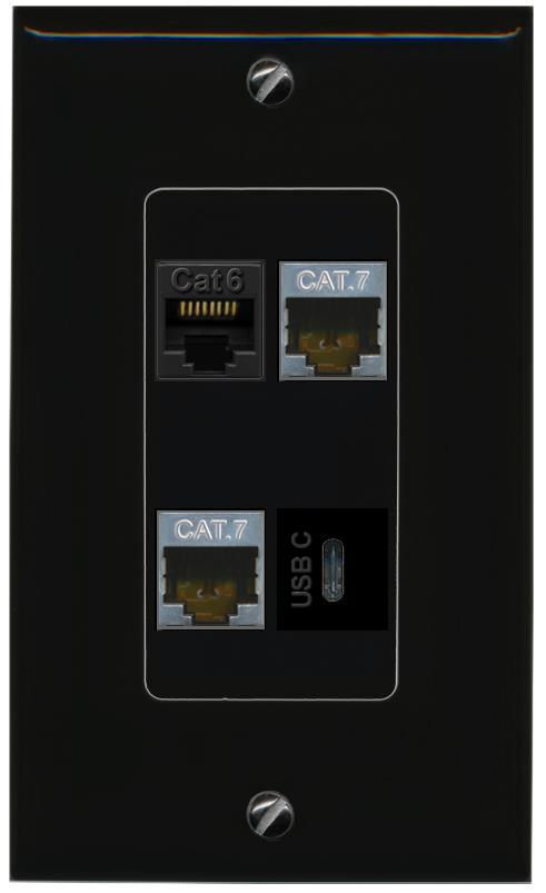 RiteAV CAT6 2 CAT7 USBC Wall Plate Decorative [Black]