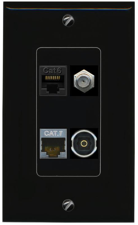 RiteAV CAT6 CAT7 COAX TOSLINK Wall Plate Decorative [Black]