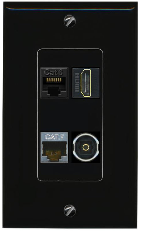 RiteAV CAT6 CAT7 HDMI TOSLINK Wall Plate Decorative [Black]