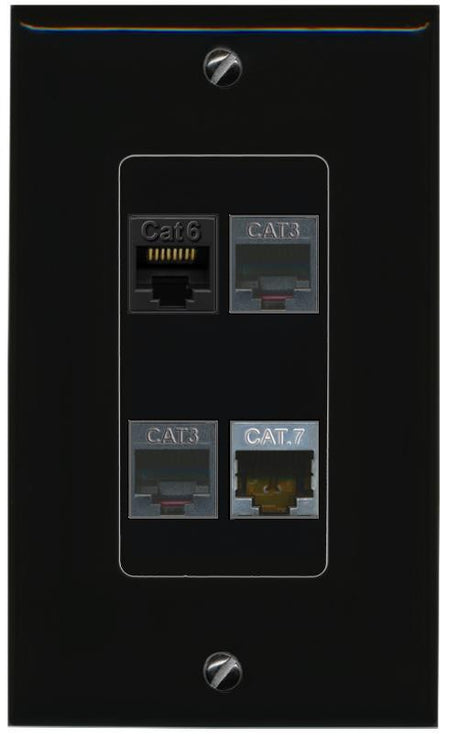 RiteAV CAT6 CAT7 2 PHONE Wall Plate Decorative [Black]