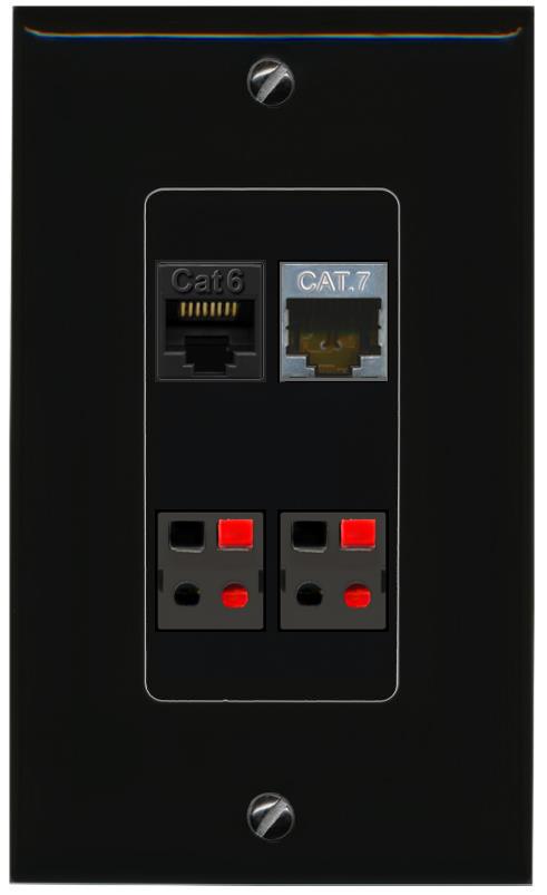 RiteAV CAT6 CAT7 2 SPEAKER Wall Plate Decorative [Black]