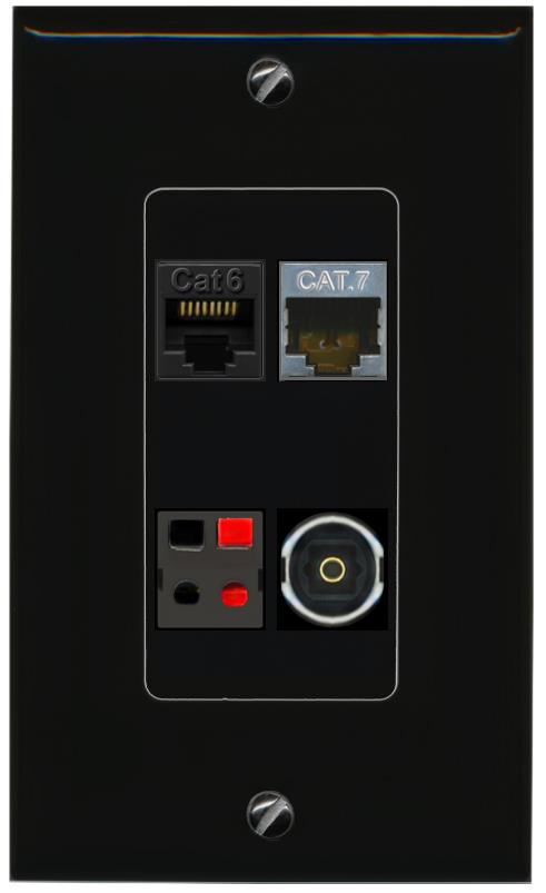RiteAV CAT6 CAT7 SPEAKER TOSLINK Wall Plate Decorative [Black]