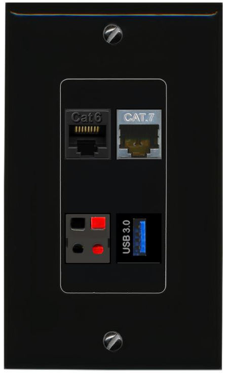 RiteAV CAT6 CAT7 SPEAKER USB-3 Wall Plate Decorative [Black]