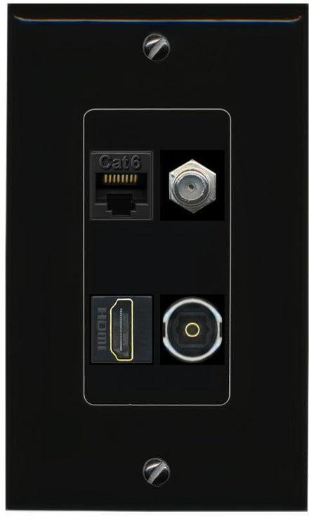RiteAV CAT6 COAX HDMI TOSLINK Wall Plate Decorative [Black]