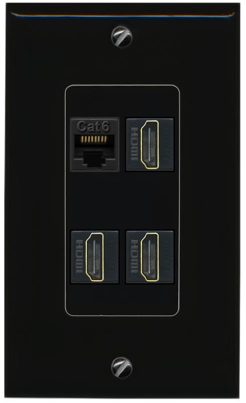 RiteAV CAT6 3 HDMI Wall Plate Decorative [Black]