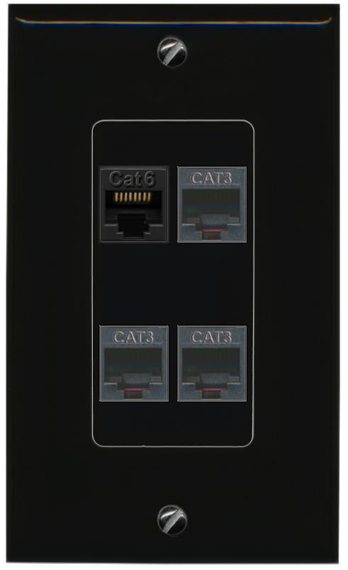 RiteAV CAT6 3 PHONE Wall Plate Decorative [Black]