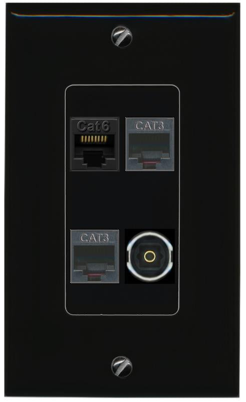 RiteAV CAT6 2 PHONE TOSLINK Wall Plate Decorative [Black]